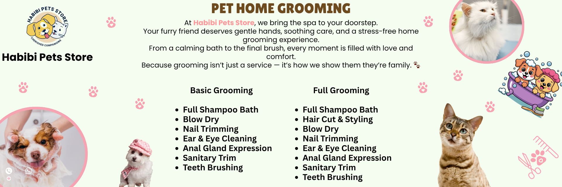 We also bring the spa to your doorstep with our home grooming services, ensuring a calm, clean, and stress-free experience right at home. 🛁✨