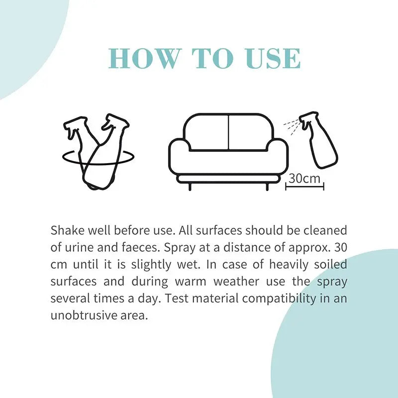 Note: Bioline Keep Off Spray is designed to be used indoors and helps manage and prevent unwanted behavior in dogs without causing them harm. Ensure to test on an inconspicuous area first to check for any potential material compatibility issues.