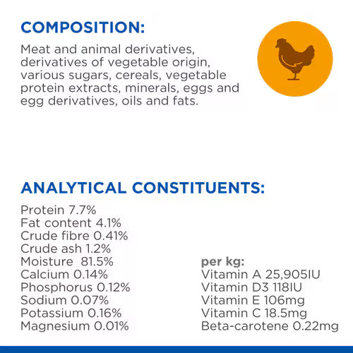Your cat will love the taste of HILL’S SCIENCE PLAN Adult chicken cat food tender chunks in gravy. It has the perfect balance of taste and nutrition and is specially formulated to fuel the energy needs of cats during the prime of their life. Made with high quality, easy-to-digest ingredients.