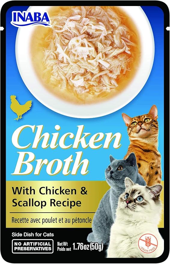 Scallop Broth, Tuna, Chicken, Scallop, Natural Flavors, Carrageenan, Guar Gum, Xanthan Gum, Potassium Chloride, Vitamin E Supplement, Sodium Citrate, Green Tea Extract.