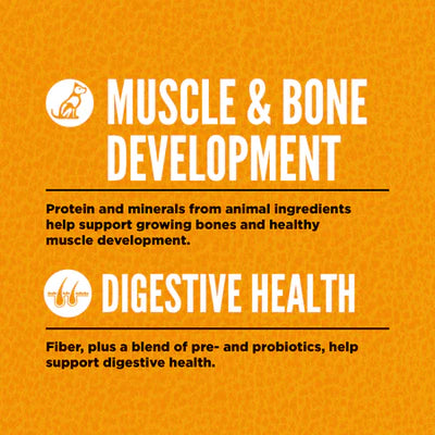 Help your puppy thrive with the power of protein-rich recipes that provide peak nourishment. All puppies do best on a Biologically Appropriate diet rich in protein and fat from quality animal ingredients to support their development. ORIJEN® Puppy diet is packed with 85% quality animal ingredients like fresh or raw free-run chicken and turkey, and wild-caught or sustainably farmed fish. Packed with WholePrey animal ingredients like organs and bone, ORIJEN food is made with the most nutrient-dense, succulent parts of the prey to deliver the nutrition puppies need. The result is a diet for your canine companion that is beyond comparison.