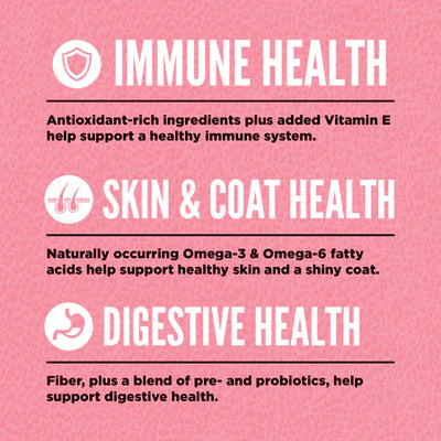 The nutrient-dense animal ingredients in this diet help support your dog’s Immune Health, Skin & Coat Health and Digestive Health.