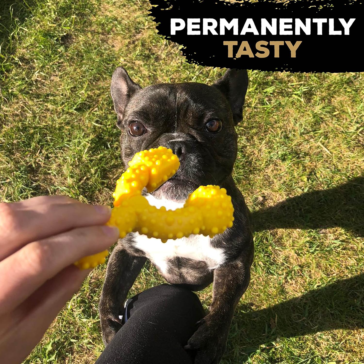 Our Super Tough range is made from 100% virgin nylon; guaranteed to last. Like all of our nylon chews, this TastyBone product has been tested on the most vigorous of chewers. Uniquely infused with irresistible flavours right through to the core, your dog will never get bored, as the flavour will last for the lifetime of the bone. With every bite your dog's gums and teeth become stronger and healthier, protecting against infections, tooth loss and vet fees. This bone has a lip-smackingly delicious Chicken flavour and is designed for toy, small, medium, large and giant dogs.